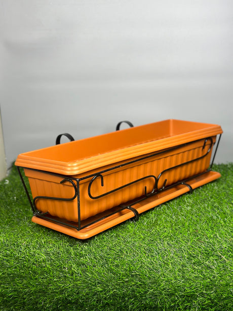 Balcony Rectangle Plastic Pot With Stand - Terracotta Color - Planter